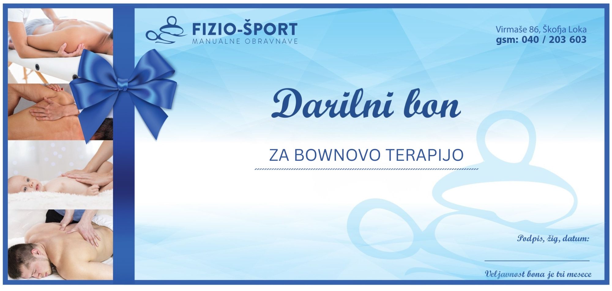 Darilni bon za Bownovo terapijo – nežna, učinkovita metoda za sprostitev, zmanjšanje bolečin in izboljšanje ravnovesja telesa.